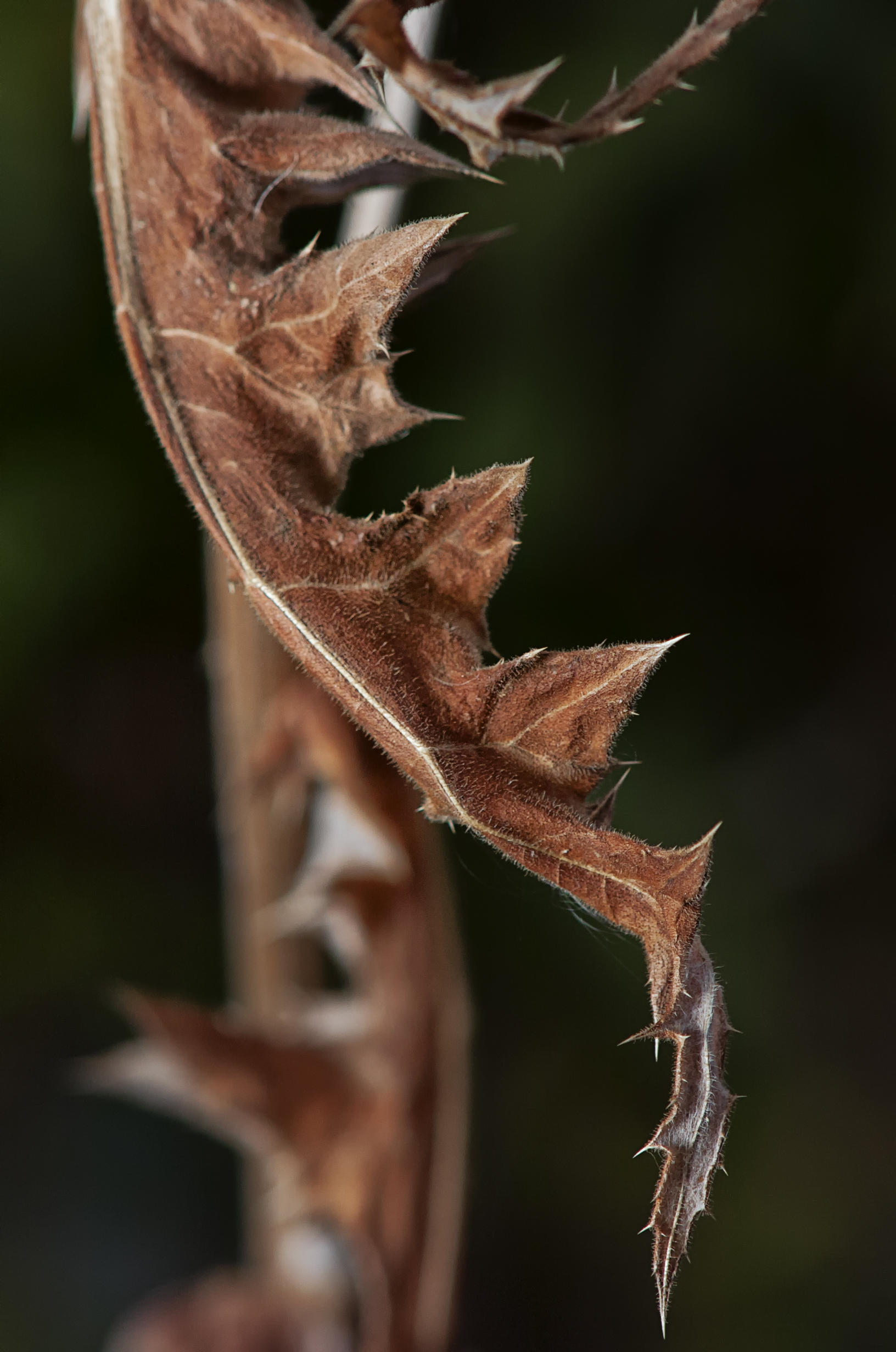 I wandered around with my tripod, a stand-mounted wireless flash pushed into a 30-inch diffuser, and a 200mm macro lens on my camera, and worked at picking out interesting shapes to photograph. The subdued light was perfect. I could place the camera on the tripod, focus on some intriguing-shaped plant, then direct the diffused flash from different positions to open up the flat-light conditions.