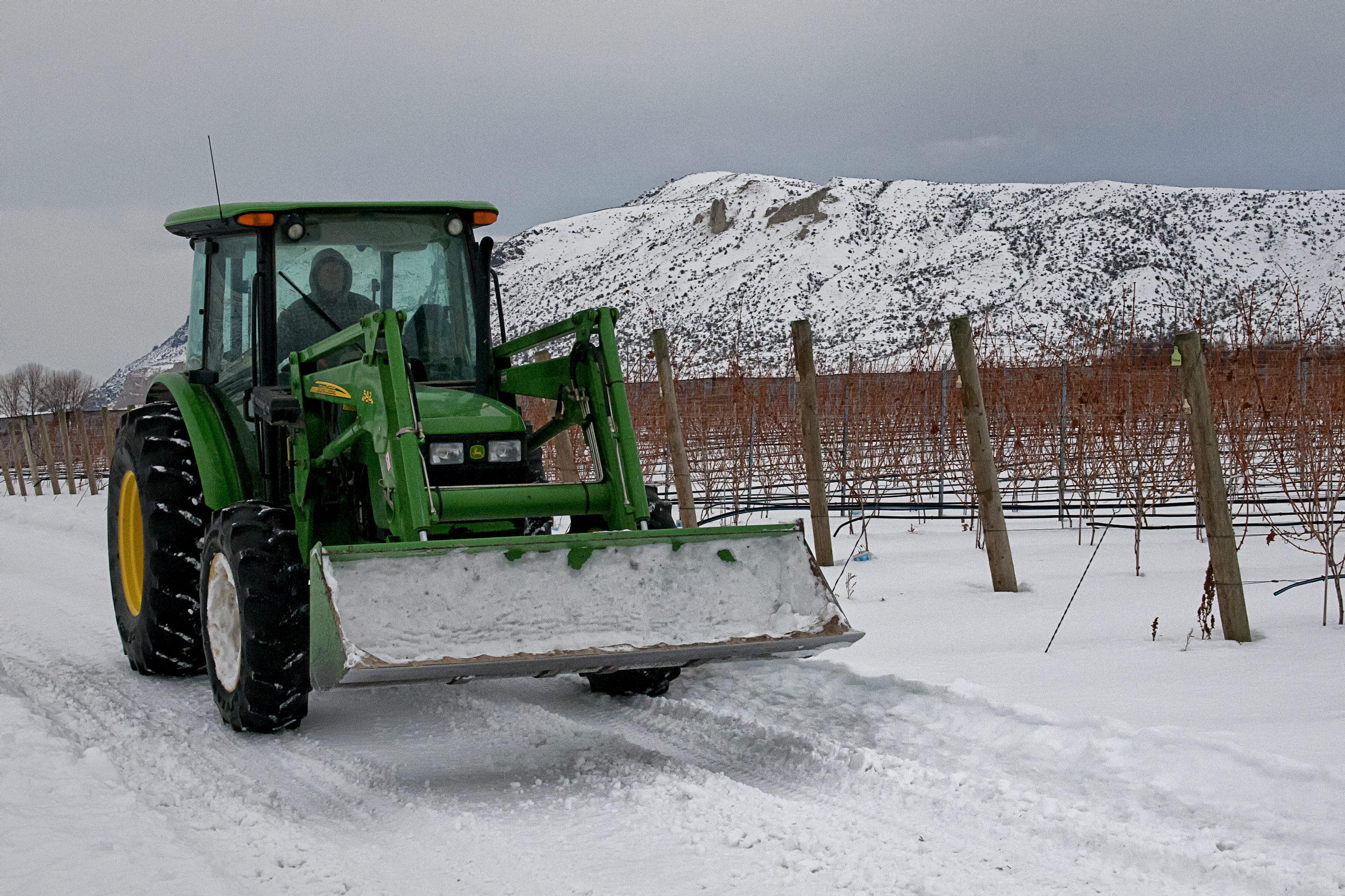 After the cold, windy hours of photography I hitched a ride on a tractor back to the barn. Those fellows were happy to get out of a long day in the cold snow and wind, returning to their warm homes to relax and pack ice on their sore, right hands. The hours of pruning comes at a cost.