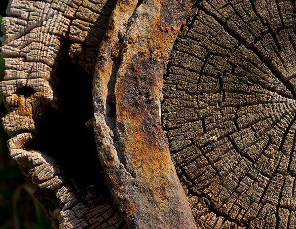 Rusted horse shoe on stump